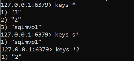 keys pattern keys * //모든키 검색 keys s* //s로 시작하는 모든 키 검색 keys *2 //2로 끝나는 모든 키 검색 |