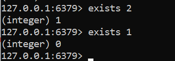 검색 하려는 key가 존재하는지 여부를 확인할때 exists 명령어를 사용한다. 반환되는 값이 1이면 존재하는 키값이며, 0이면 존재하지 않는 키값이다.