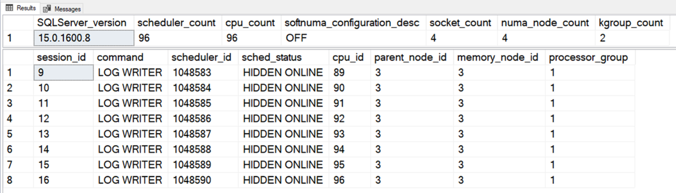 SQL Server2017, SQL Server 2019, Log Writer Worker, 로그 쓰기 워커, NUMA, OS NODE