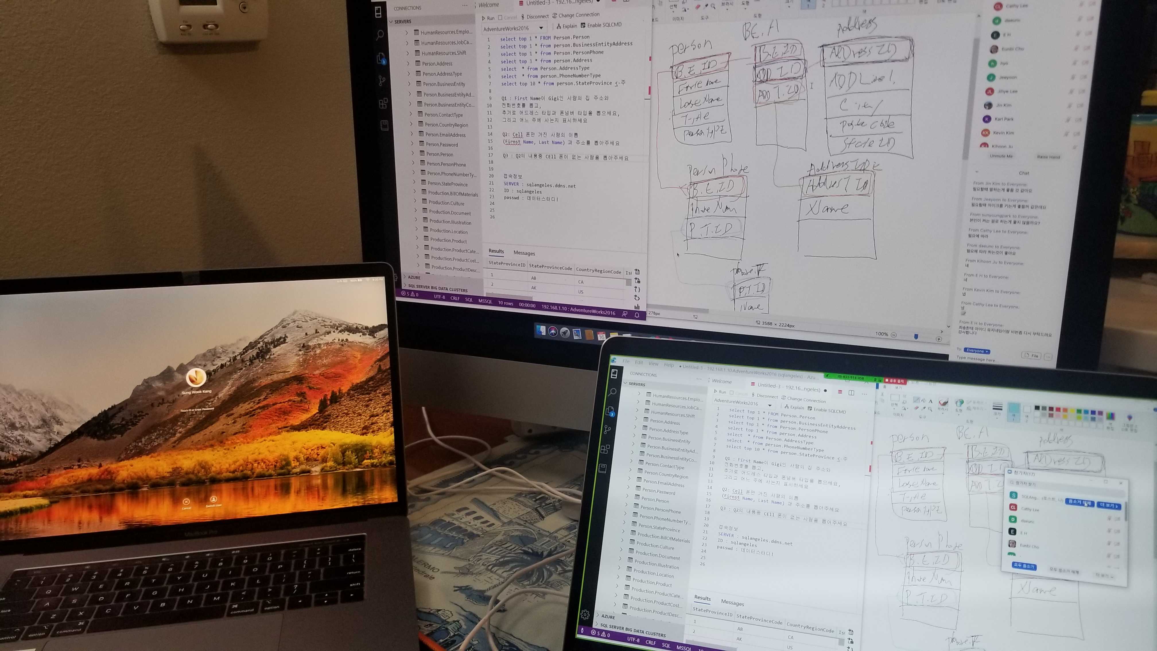 온라인 스터디를 진행하기 위해 발표용 랩탑과 방송을 모니터링하기 위한 아이맥, 그리고 기타 발표시 자료를 참고할 랩탑을 준비하였습니다. 성능 좋은 아이맥을 놔두고 왜 랩탑으로 방송을 했을까 라는 의문이 들기도 하실텐데, 랩탑의 터치스크린과 펜 지원 기능이, 발표시 설명을 돕기 위한 다양한 부가 기능으로 사용할 수 있기 때문입니다.