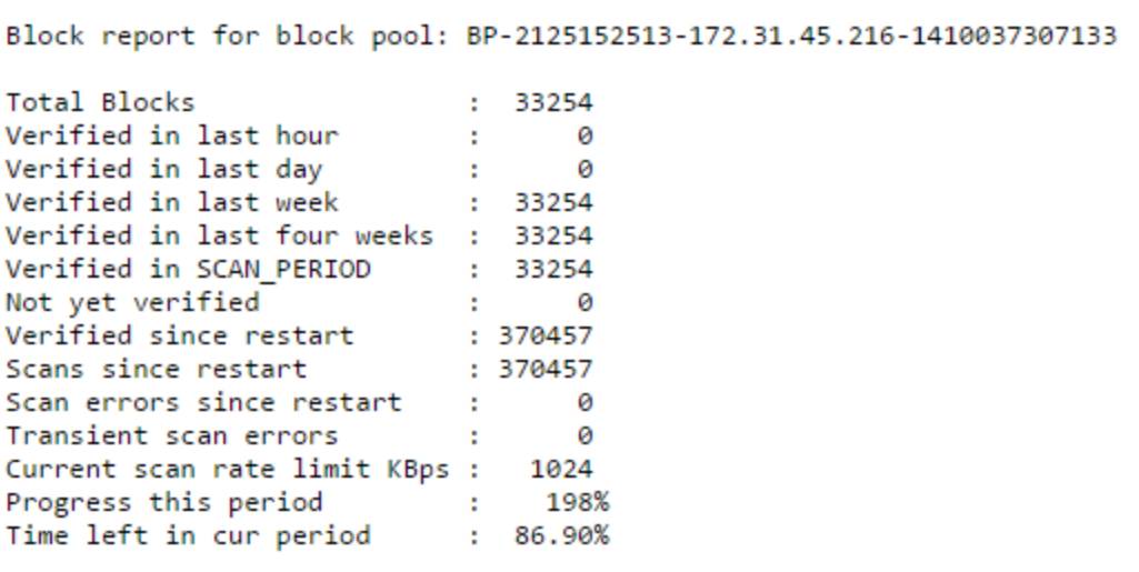 블록 스캐너가 실행될때마다 보고서가 생성되며 각 데이터 노드의 웹 인터페이스 URL에서 보고서를 확인할 수 있다.