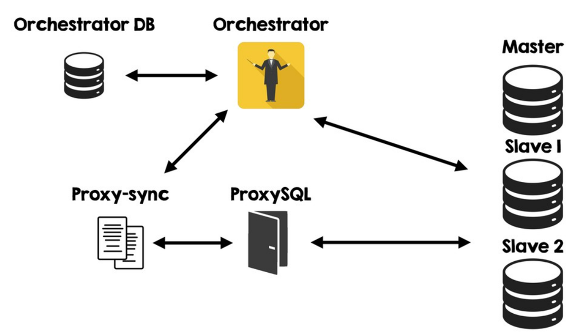 ProxySQL은 Recovery 기능을 제공하지는 않는다. 그래서 MySQL 서버 장애시DB 클러스터에서는 Slave DB (Read only)로 운영되던 데이터베이스를 Master DB로 승격을 시켜야 하는데, 이 기능을 제공하지는 않는다. 이러한 단점을 극복하기 위해 MySQL 고가용성 솔루션인 오케스트레이터(orchestrator)를 함께 사용한다.