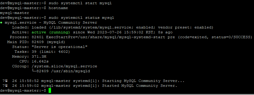mysql-master(172.30.1.97) 서버를 복구했다는 가정하에 mysql-master(172.30.1.97) 서비스를 다시 시작한다.