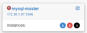MySQL 서비스가 중지되고 오케스트레이터가 장애 상황을 인지하면 아래와 같이 대시보드 상태가 변경된다. 파란색 숫자3은 현재 구성되어 있는 클러스터 서버 개수이며, 빨간색 숫자2는 슬레이브 개수이며 복제 불가능을 표시하고 있다. 검은색 1은 응답 없는 서버 개수를 나타낸다.