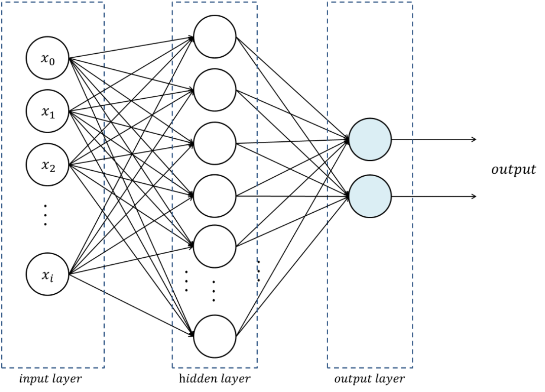 입력층에서 은닉층 방향으로 이동하면서 각 입력에 해당하는 가중치가 곱해지고, 결과적으로 가중치 합으로 계산되어 은닉층 뉴런의 함수 값(일반적으로 시그모이드(Sigmoid) 사용)이 입력된다. 그리고 최종 결과가 출력된다.