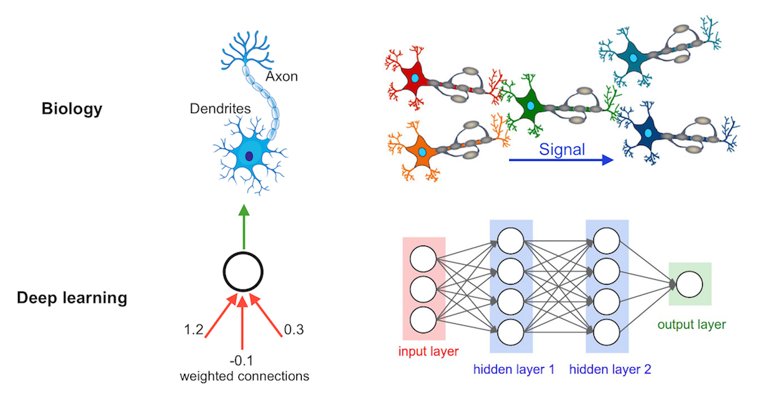 머신러닝에서 발전된 형태로 사람이 학습할 데이터를 입력하지 않아도 스스로 학습하고 예측한다. 이러한 모델은 인간의 신경망을 본딴 인공 신경망에서 발전한 것이다. 딥러닝은 머신러닝 기법인 Feature Learning (또는 Representation Learning) 중 하나 이다. 딥러닝은 인공신경망에서 발전한 심층신경망 (Deep Neural Network, DNN)인데, 여러 신경들이 다음 신경에 신호를 전달하는 방식의 모델이기에 딥러닝을 계층적 Feature Learning (또는 Representation Learning)라고 부른다.