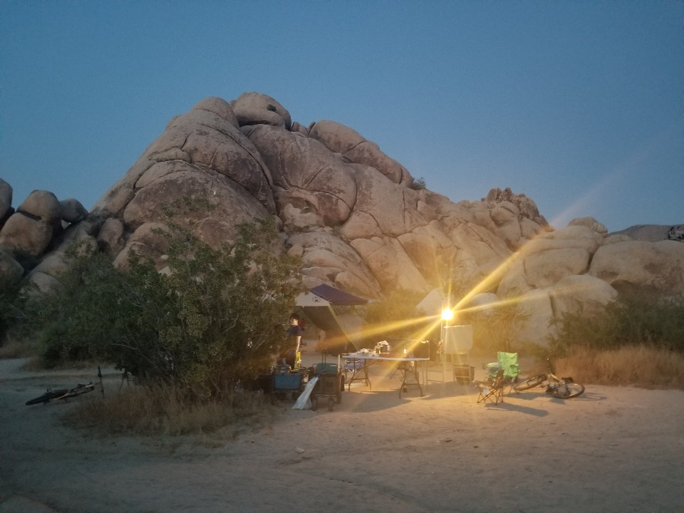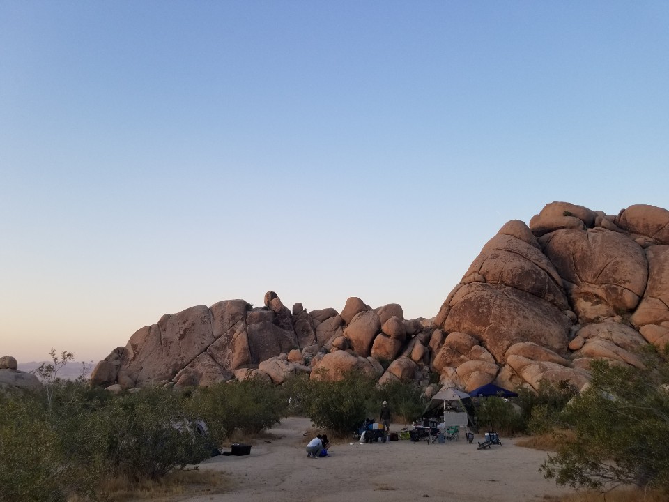 캠프 그라운드는 다양한 스팟중에 Indian Cove로 조슈아 트리 국립공원에서 다시 밖으로 나와서 뒷편으로 들어가야 한다. 큰 바위들에 둘러쌓여있었으며, 그룹 캠핑장이어서, 매우큰 스팟을 단도으로 사용 (거의 산과 산사이를 통째로 사용) 할 수 있었다.