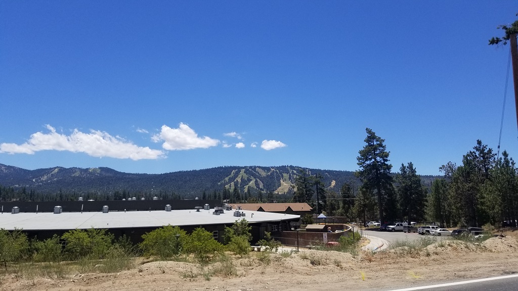 캠프사이트로 이동하는길에 반대편 저 멀리 스키장이 보였다. 빅베어는 겨울에 눈이 1미터이상 오기도 하기 때문에, LA에서 스키를 즐길수 있는 가까운곳중 하나이다.