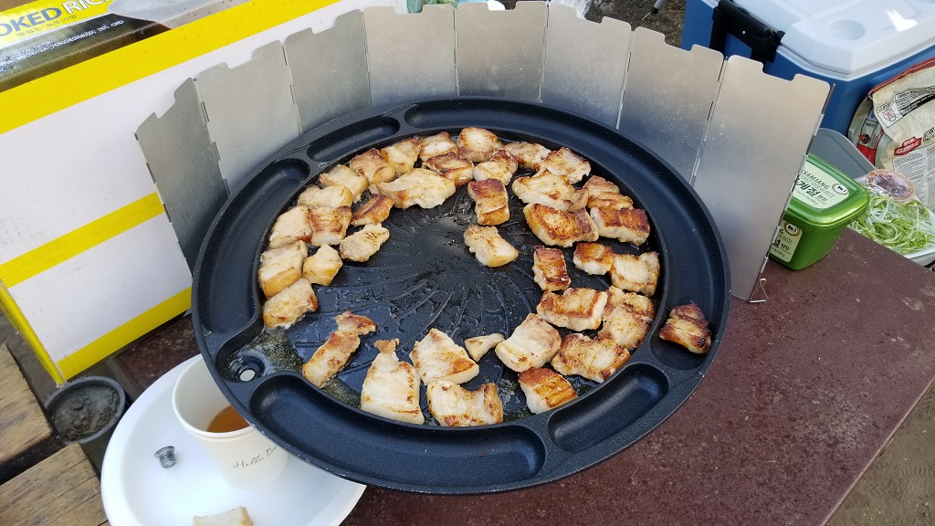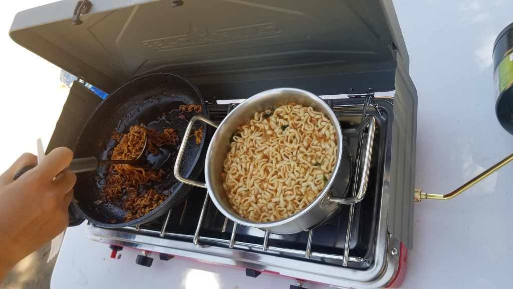 오전에 출발해서 점심 시간에 맞춰 도착 하도록 계획하였기에, 짐을 풀자마자 점심 준비부터!! 이번에 새로 구입한 2버너 스토브! 화력 짱! (부르스타 바이바이~)