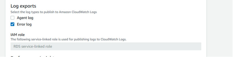 CloudWatch가 오류 로그를 모니터링 할 수 있도록 Log exports에서 Error log항목을 선택한다. 변경 사항을 적용하려면 RDS DB 인스턴스 재시작이 필요하다.