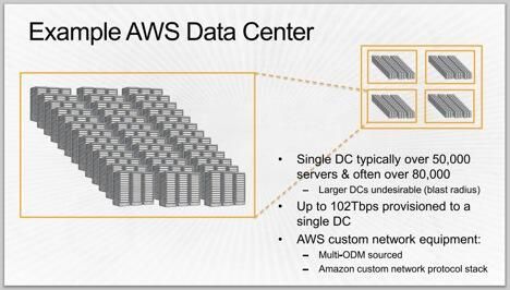 AZ(가용 영역)는 AWS 리전의 이중화 전력, 네트워킹 및 연결이 제공되는 하나 이상의 개별 데이터 센터로 구성된다. AWS 리전의 모든 AZ는 높은 대역폭, 지연 시간이 짧은 네트워킹, 완전한 이중화를 갖춘 전용 메트로 광 네트워크와 상호 연결되어 있어 AZ 간에 높은 처리량과 지연 시간이 짧은 네트워킹을 제공한다. 네트워크 성능은 AZ 간 동기 복제 기능을 충분히 수행할 수 있으며 AZ 간의 모든 트래픽은 암호화된다. AZ는 다른 모든 AZ와 수 킬로미터에 상당하는 유의미한 거리를 두고 물리적으로 분리되어 있다. 다만 모든 AZ는 서로 100km(60마일) 이내의 거리에 위치한다.