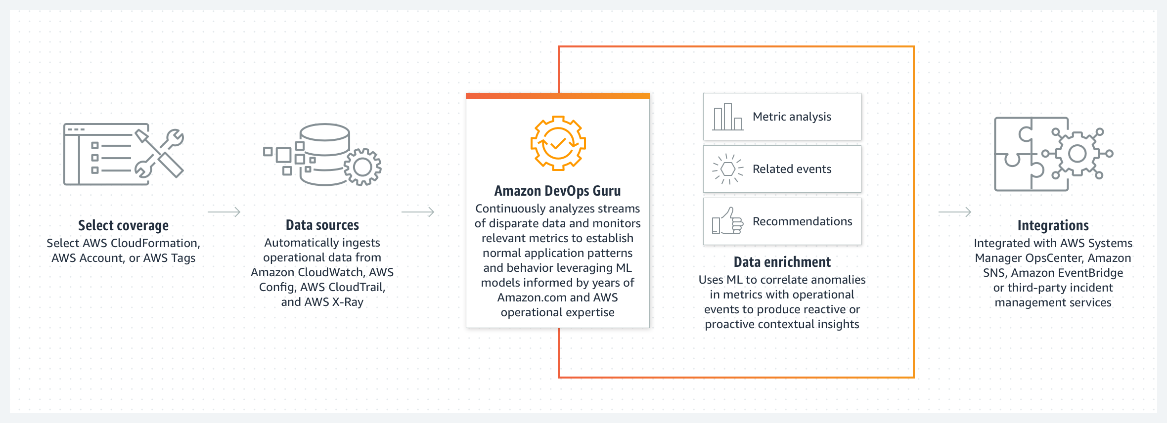 이 서비스는 ML을 사용하여 호스트 리소스의 과도한 사용, 데이터베이스 병목 현상 또는 SQL 쿼리의 오작동과 같은 광범위한 성능 관련 데이터베이스 문제를 자동으로 식별하고 분석한다. 또한 발견한 문제를 수정하기 위한 가이드라인을 제공한다. 이상 현상이 감지되면 콘솔에서 결과를 확인할 수 있을 뿐만 아니라 Amazon Event Bridge또는 Amazon SNS를 사용하여 알림을 보낼 수 있다.