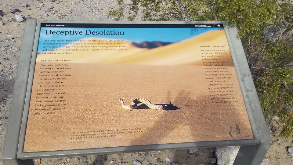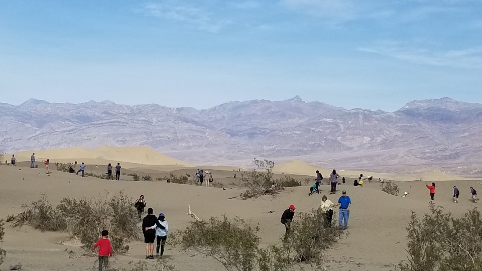 LA를 출발한지 4시간 정도 지나서 데스밸리 입구에 도착하였다. 대부분의 차들이 데스밸리 입구를 그냥 지나쳤는데, 우리가 내려서 사진을 찍으니 그 뒤로 차들이 모두 서서 사진을 찍고 갔다. 차례대로 입간판에서 사진을 찍느라 자연스럽게 줄을 서는 풍경도 이어졌다. 데스밸리는 1월~2월이 여행하기 가장 좋다고 해서인지 여행객들이 많았다.