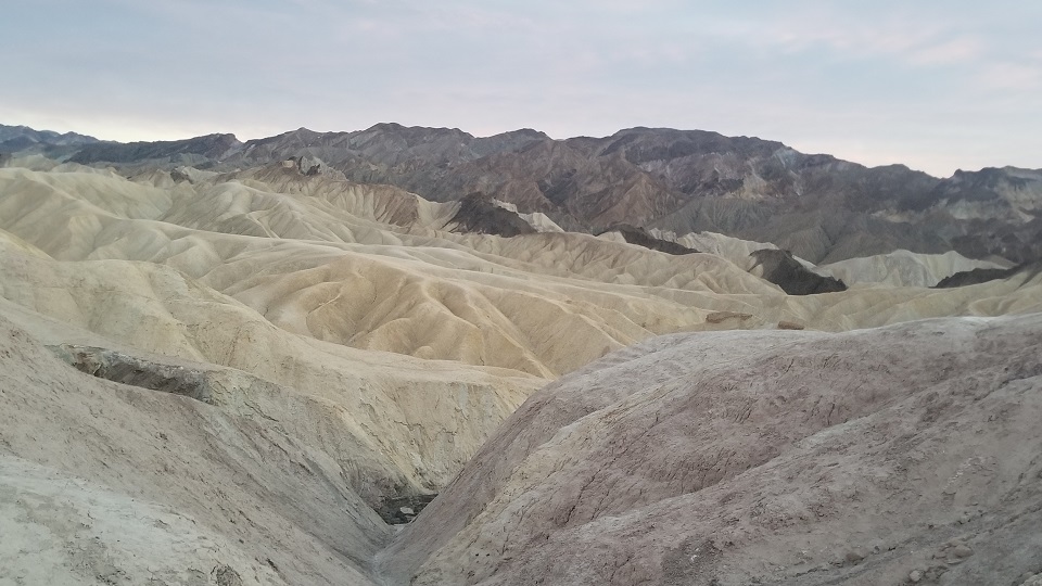 미자막으로 Zabriskie point 로 데스밸리에서 가장 사진찍기 좋은 곳으로 알려진 곳이다. 이곳에서는 골드캐년의 침식되고 깎여진 굴곡들과 지층들을 감상할 수 있으며, 해질녘에는 빛의 각도에 따라 지층의 다양한 색깔을 감상할 수 있다. 낮에 시간을 많이 허비하는 바람에 의도하지 않게 해질녘에 방문하였는데 해질녘이 최고의 타임이라고 한다. 호텔로 이동하는 길목에 있어서 시간을 허비하지 않고 구경할 수 있었다.