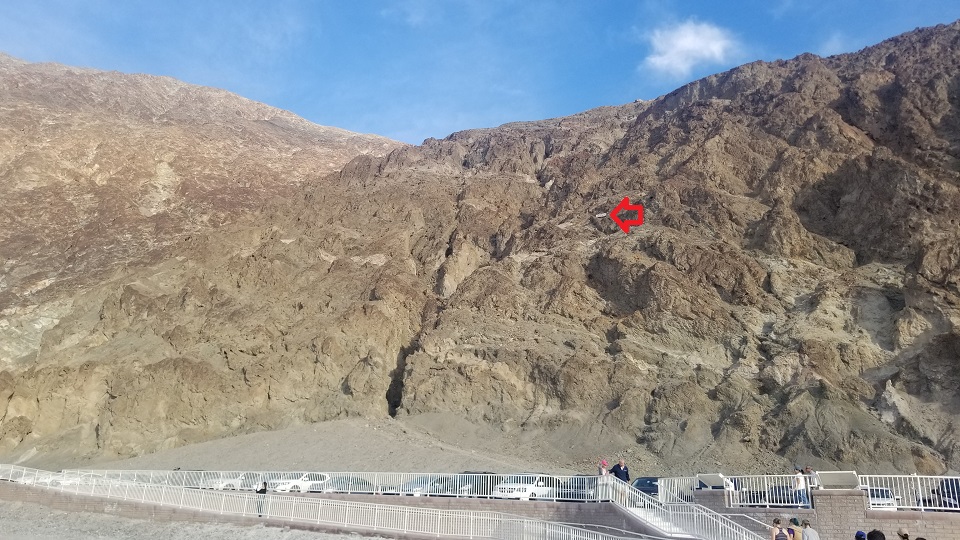 배드워터 뒤쪽에 보이는 산에 해수면의 위치를 표시해놓은 곳을 볼 수 있다. 이렇게 보면 높이가 잘 가늠이 되지 않을텐데 멀리서 보면 우리가 얼마나 낮은 위치에 있는지 알 수 있다.
