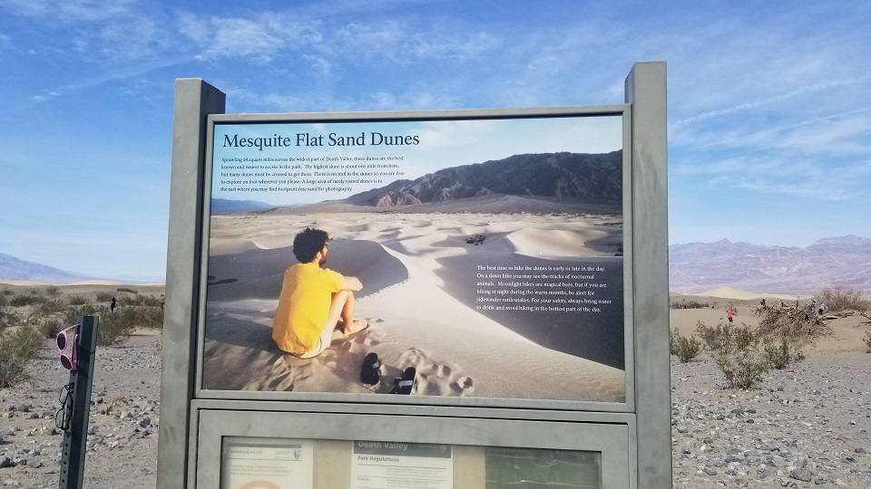 LA를 출발한지 4시간 정도 지나서 데스밸리 입구에 도착하였다. 대부분의 차들이 데스밸리 입구를 그냥 지나쳤는데, 우리가 내려서 사진을 찍으니 그 뒤로 차들이 모두 서서 사진을 찍고 갔다. 차례대로 입간판에서 사진을 찍느라 자연스럽게 줄을 서는 풍경도 이어졌다. 데스밸리는 1월~2월이 여행하기 가장 좋다고 해서인지 여행객들이 많았다.