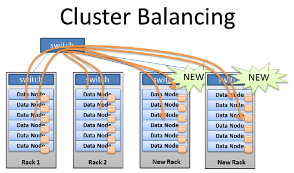 각 노드의 균형은 노드들의 이용률(노드에서 사용중인 공간 비율과 총 저장공간의 비율), 클러스터의 이용률(클러스터에서 사용중인 공간과 총 저장공간의 비율)을 비교하여 임계치 보다 적을때 까지 실행된다. 임계치는 기본 10% 이며 클러스터에는 오직 하나의 밸런서만이 실행될 수 있다. 임계치 변경은 아래 명령으로 변경할 수 있다.