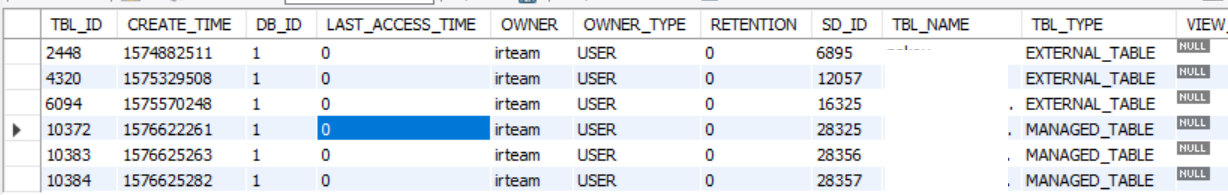 SELECT * FROM hive.TBLS as t inner join hive.DBS as d on t.DB_ID = d.DB_ID ORDER BY d.NAME; |