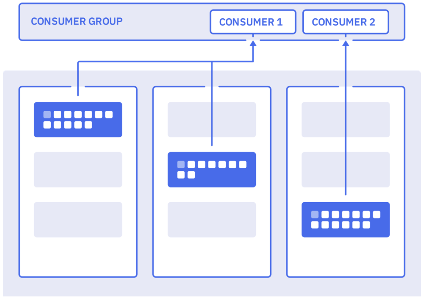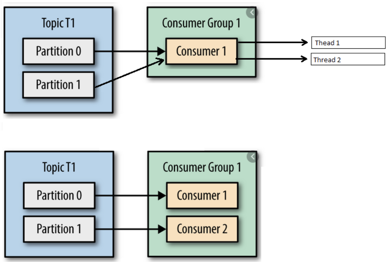 컨슈머 그륩은 확장도 가능하다. 만약 프로듀서가 토픽에 보내는 메시지 속도가 증가하여 컨슈머가 메시지를 가져가는 속도보다 빨라지면, 컨슈머가 처리하지 못한 메시지들이 점점 많아지기 때문에 컨슈머를 확장하여 이 문제를 해결해야 한다. 이때 단순히 컨슈머만 확장한다면 기존의 컨슈머어 오프셋 정보와 새로 추가된 컨슈머의 오프셋 정보가 뒤섞이면서 수신되는 메시지들이 엉망이 될 수 있다. 그래서 카프카에서는 동일한 토픽에 대해 여러 컨슈머가 메시지를 가져갈 수 있도록 컨슈머 그룹이라는 기능을 제공한다.