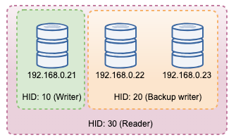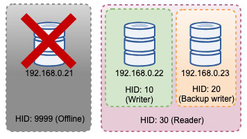 현재 노드 설정에서 모든 호스트가 가동되어 실행 중임을 고려하면 ProxySQL은 호스트를 아래와 같이 다양한 시나리오로 그룹화할 수 있다.
