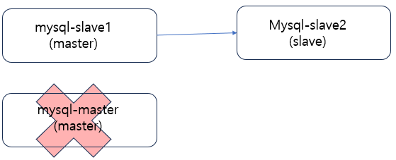 기존의 운영중이던 마스터 서버를 강제로 중지하여 장애 상황을 구현한 다음, 현재 슬레이브로 운영되던 서버중 하나가 새로운 마스터가 되어 장애조치 된다. 그리고 나머지 슬레이브 서버는 새로운 마스터 서버와 복제 싱크를 한다.
