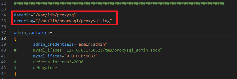 ProxySQL은 서비스를 시작할 때 config 파일을 읽어들여 datadir의 위치를 확인한다. 그 다음에 datadir 경로에 위치한 데이터베이스 파일 또는 디스크 파일이 있는지 여부를 확인하여 해당 파일을 읽어 설정 값으로 사용한다. 일반적인 설치를 진행하였다면 config 파일은 아래 경로에 존재한다.
