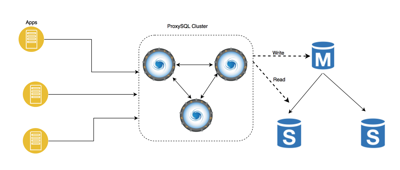 서비스 운영시 MySQL서버를 여러대로 구성해야하는 경우가 있다. (예, Replication, Sharding 등) 이때 어플리케이션 수가 증가할수록 MySQL 서버와 맺게 되는 커넥션수가 급격하게 늘어난다. 예를들어 MySQL 서버가 30대, 어플리케이션 서버가 200대이고, 각 서버별로 커넥션을 10개씩 유지한다면 30 * 200 * 10 = 60000 커넥션이 발생한다. 이런 이슈를 피하기 위해 중간에 미들웨어 개념으로 프록시 역할을 해주는 것이 ProxySQL이다. ProxySQL은 효율적인 커넥션 관리뿐만 아니라 라우팅 기능 등 여러 기능을 제공한다.
