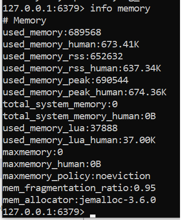 Redis에 접속하여 Redis info 명령을 실행하면 메모리 관련 사용 정보를 반환한다.