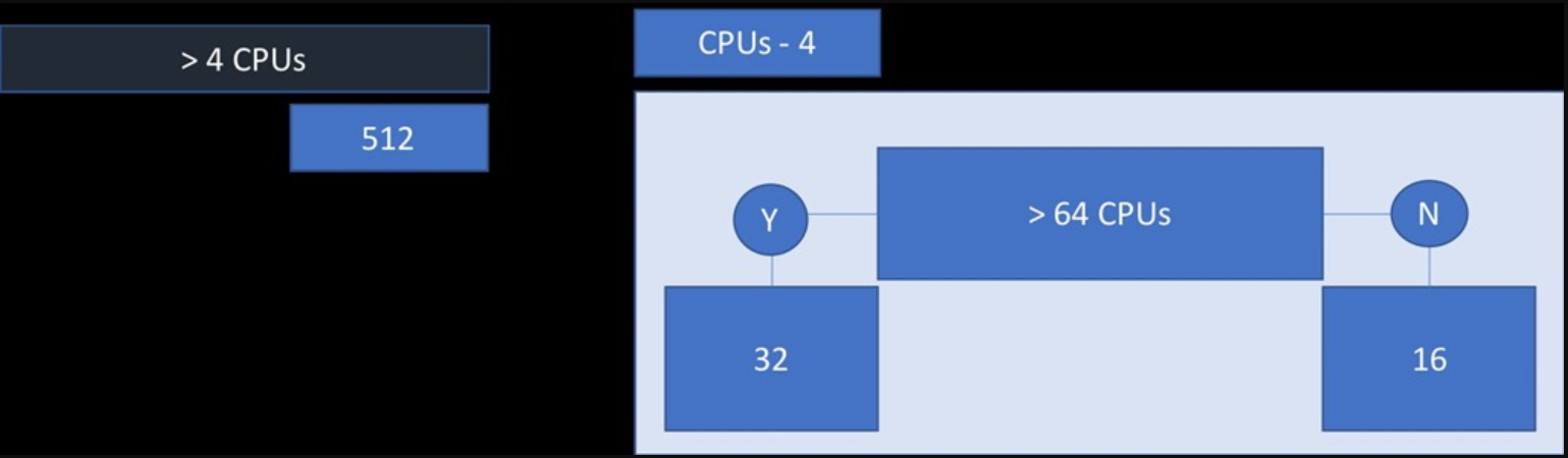 CPU가 4개보다 많으면 worker thread 수는512 까지 증가하며, CPU 수에 따라32또는 16씩 증가하여 최대 512까지 증가한다. 만약 시스템에 64개 이상의 CPU가 있으면 추가 worker thread는 CPU당 32 worker thread가 증가한다.