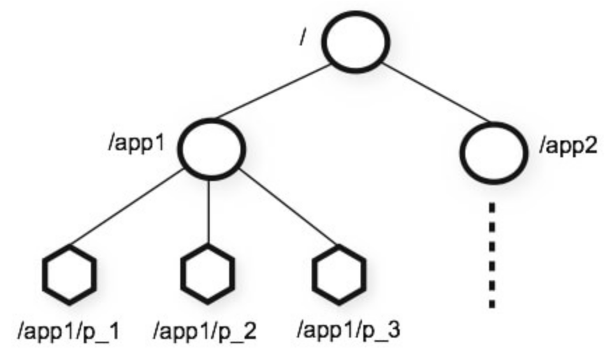 주키퍼는 n개의 서버와 클라이언트 API로 구성되어 있으며, 서버는 파일 시스템과 비슷한 형태로, 데이터를 계층적으로 저장한다. 저장된 데이터는 주키퍼 서버들 사이에 복제되어 운영되기 때문에 일부 서버에 장애가 발생하더라도 전체 장애로 이어지지는 않는다.