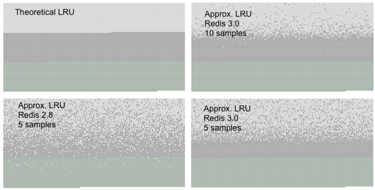 Redis Memory LRU(Least Recently Used) 캐시 · Version : Redis 3.2.100 (Windows) Redis에서 캐시로 사용되는 알고리즘으로 LRU(Least Recently Used)를 사용한다. LRU 알고리즘은 최근에 사용된 데이터들은 재사용이 될 가능성이 높다고 판단하여 계속해서 메모리에 상주 시킬수 있도록 재배치 하는 작업이다. LRU 알고리즘으로 Redis 서버 인스턴스를 운영하기 위해서는CONFIG SET 명령어 또는 redis.conf 파일에서 아래 파라메터를 수정한다. · maxmemory · maxmemory-samples 5 maxmemory 파라메터는 Redis 서버에 할당할 수 있는 최대 메모리 크기이며, 이 값을 0로 설정할 경우 최대 메모..